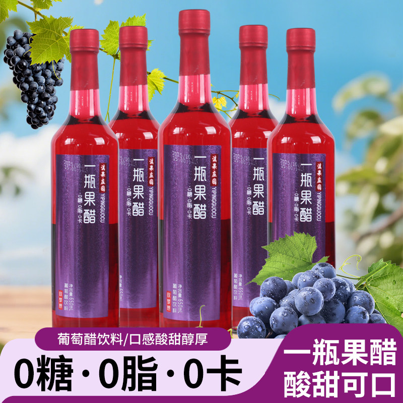 无糖型葡萄醋饮料650ml*6瓶装0糖0脂0卡好健康水果汁发酵饮料整箱