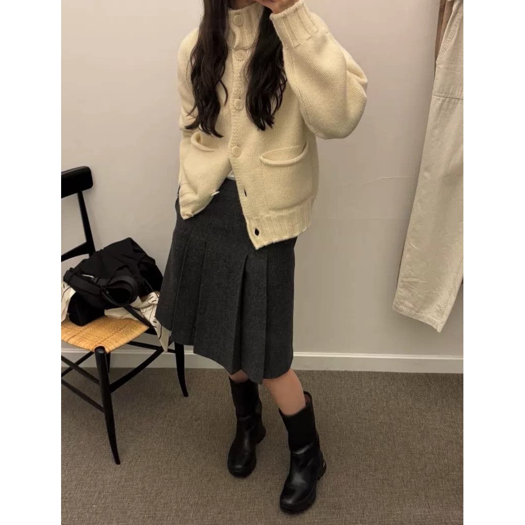 秒发!通勤OL风2026春韩国not*ing written针织开衫+百褶半身裙女