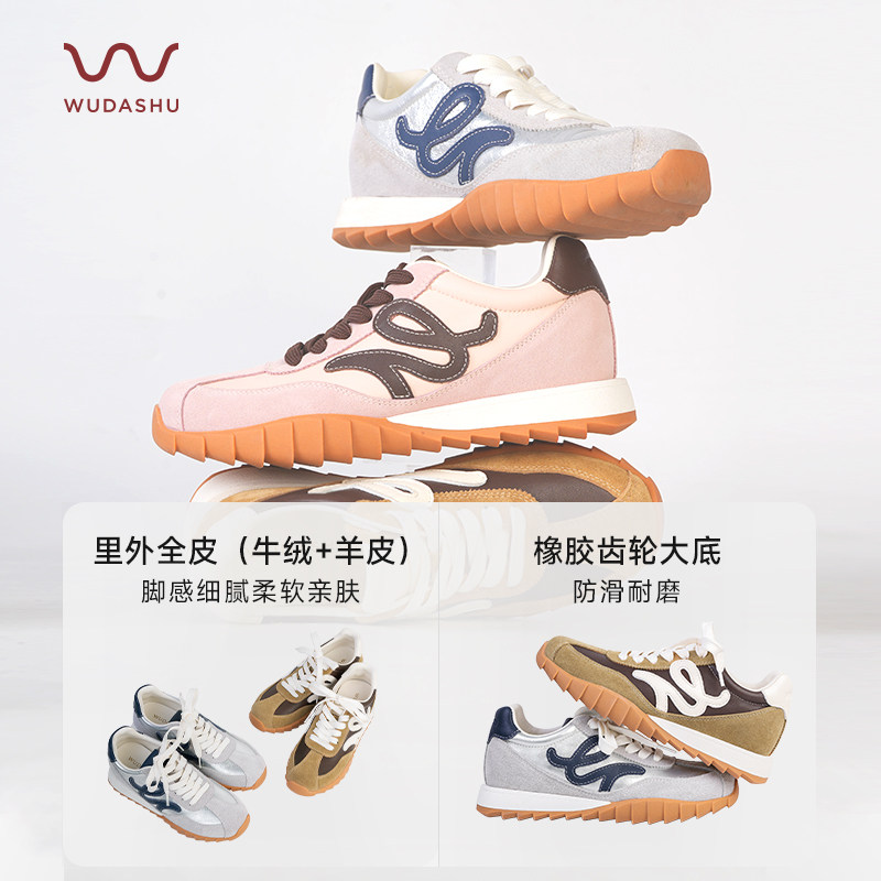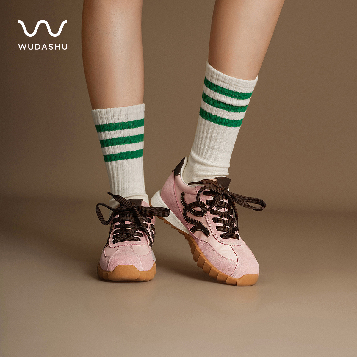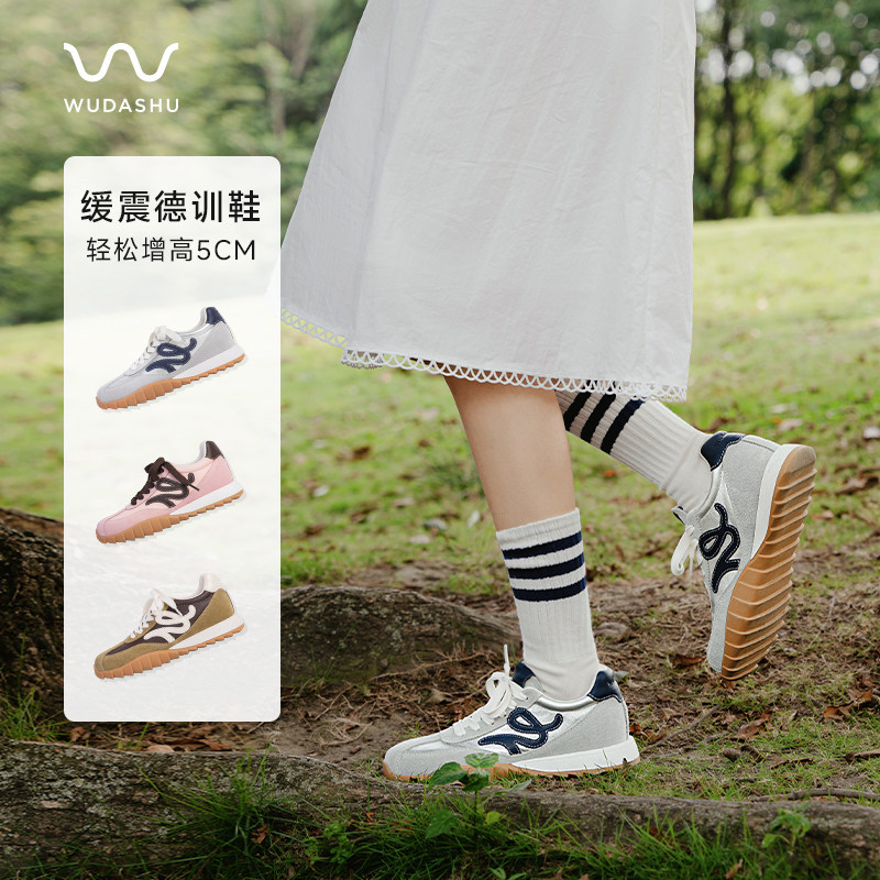 吴大叔2025秋冬新休闲德训鞋女款复古气垫缓震厚底运动内增高板鞋
