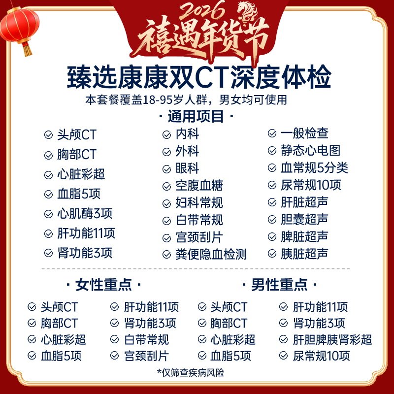 【禧物社】美年大健康臻选康康双CT体检200TMMN00