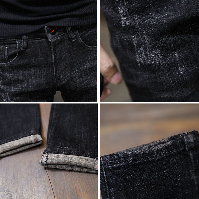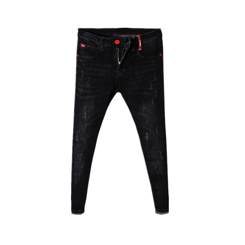 秋冬款网红裤子男韩版潮流修身型小脚裤潮牌黑色紧身牛仔裤男长裤