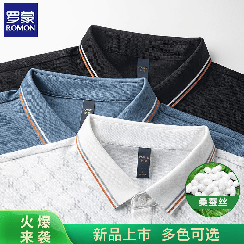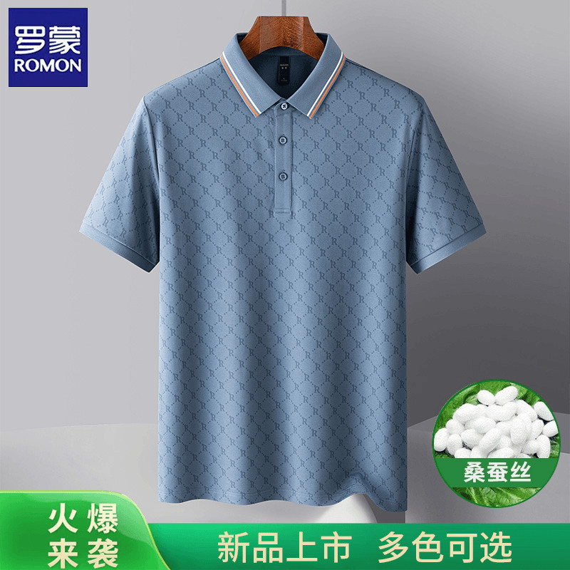 罗蒙正品【亚麻桑蚕丝】翻领短袖