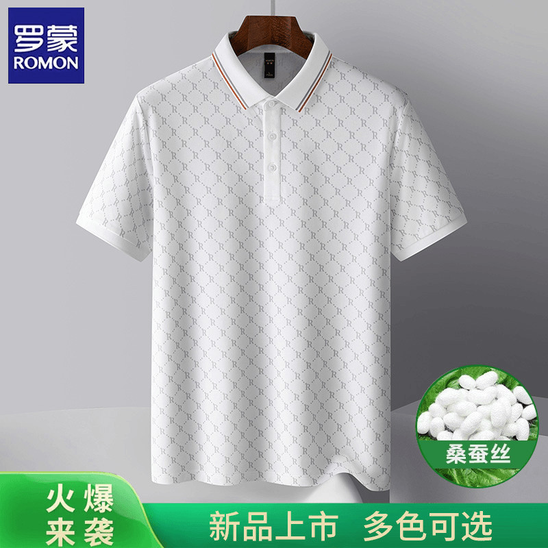 罗蒙官方正品POLO衫【亚麻桑蚕丝】方格休闲商务翻领短袖男士T恤
