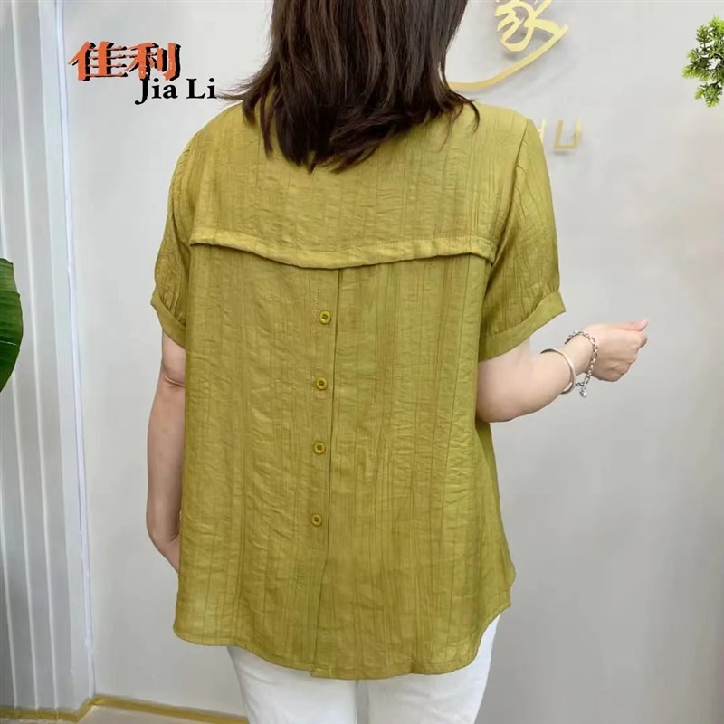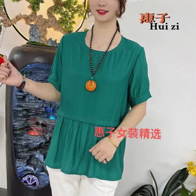 夏季新款时尚短袖女装妈妈装中老年宽松休闲天丝棉圆领T恤上衣服