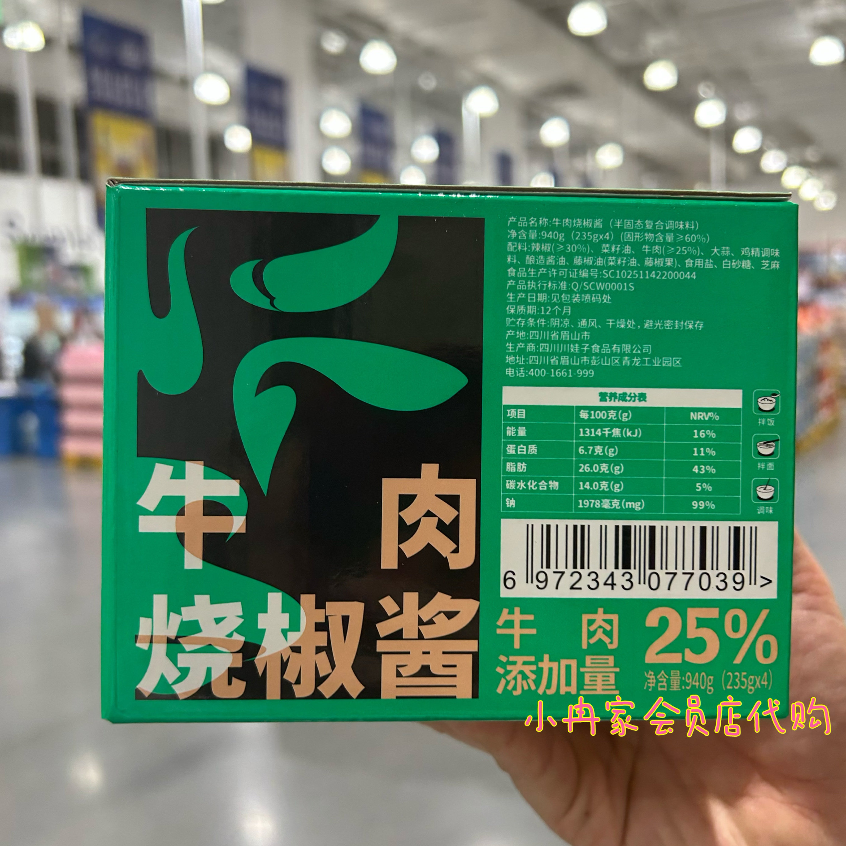 山姆会员店代购川娃子牛肉烧椒酱拌饭拌面辣椒酱235g下饭