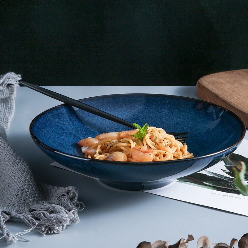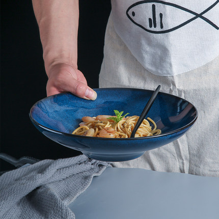 星夜陶瓷盘子创意西餐盘家用菜盘果盘窑变沙拉盘大号意面盘瑕疵碗