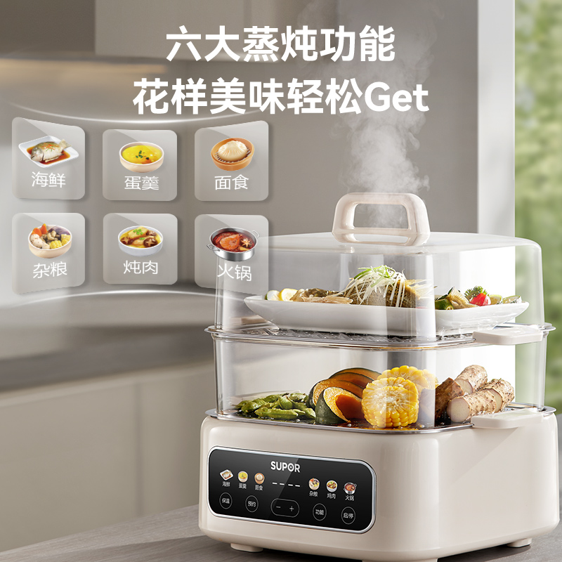 苏泊尔电蒸锅多功能家用早餐机多层蒸箱不锈钢一体锅官方旗舰店