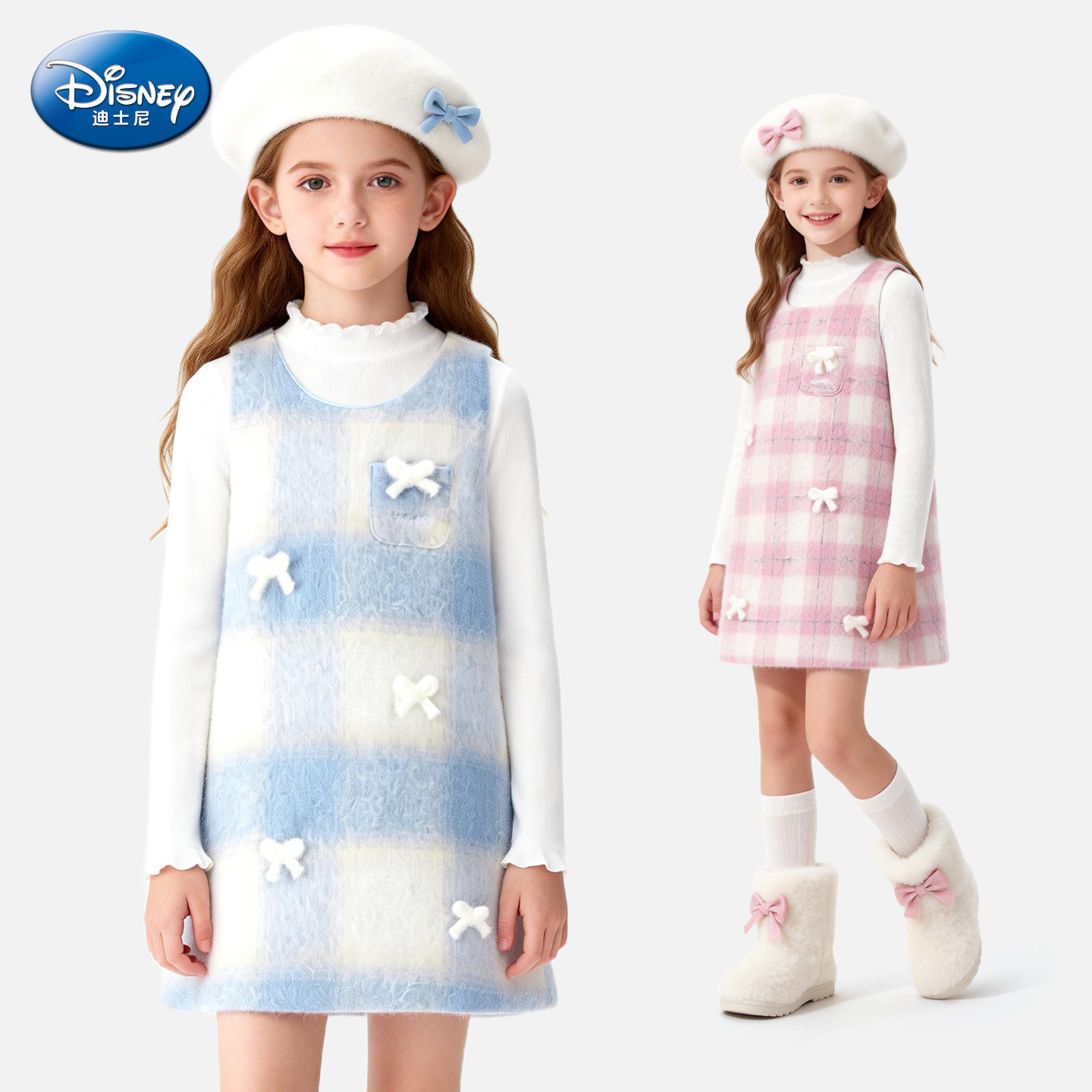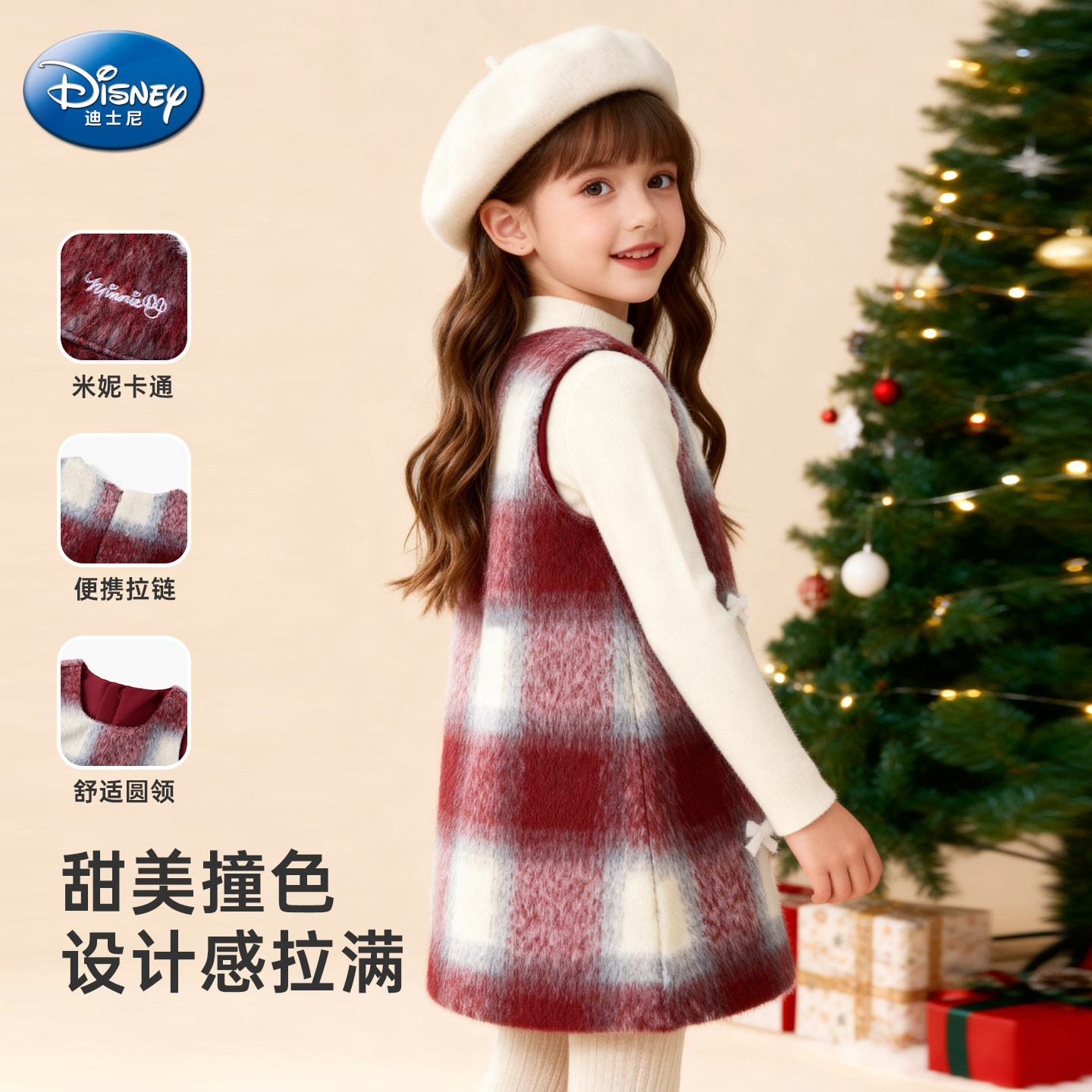 迪士尼儿童裙子2025新款女童连衣裙冬小女孩红色羊毛裙女宝公主裙