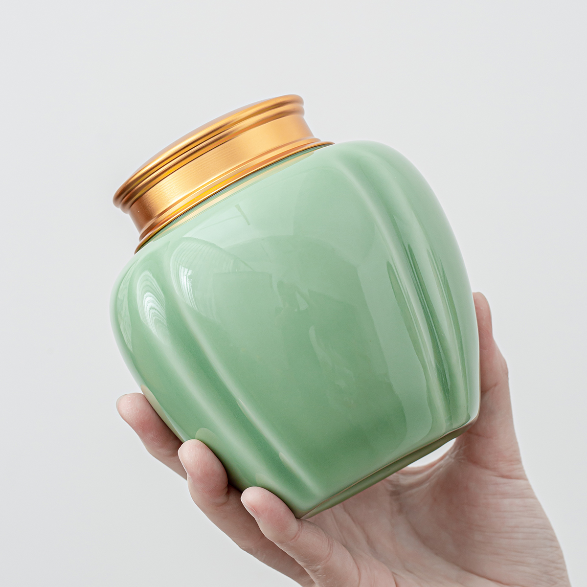 中式青瓷茶叶罐精品高档大号家用陶瓷储存罐防潮密封存茶罐高级感