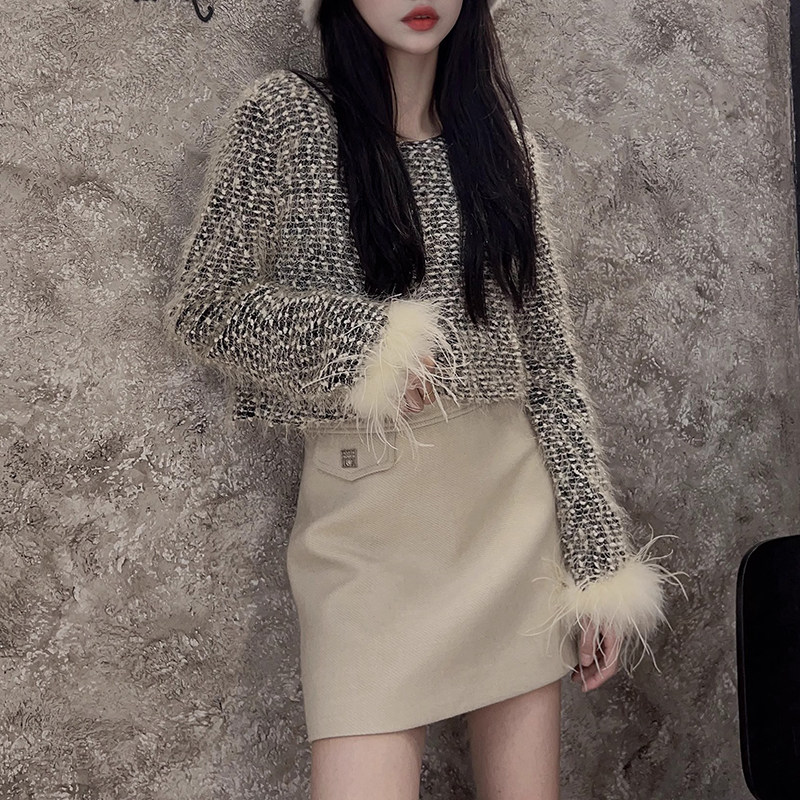 羊毛呢半身裙女2025秋冬款高腰显瘦黑色高级感气质小个子a字短裙