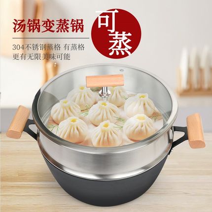 铸铁氮化汤锅无涂层煲汤炖锅家用生铁锅双耳不粘火锅锅电磁炉煮锅
