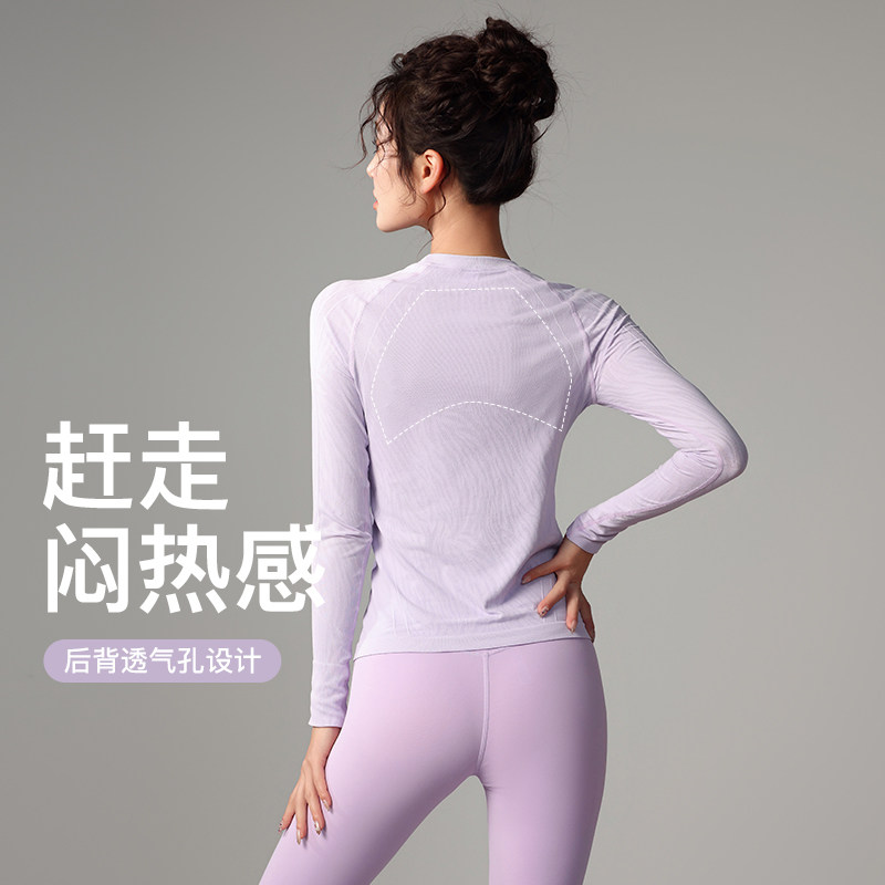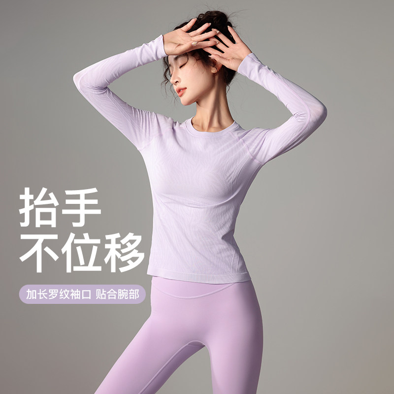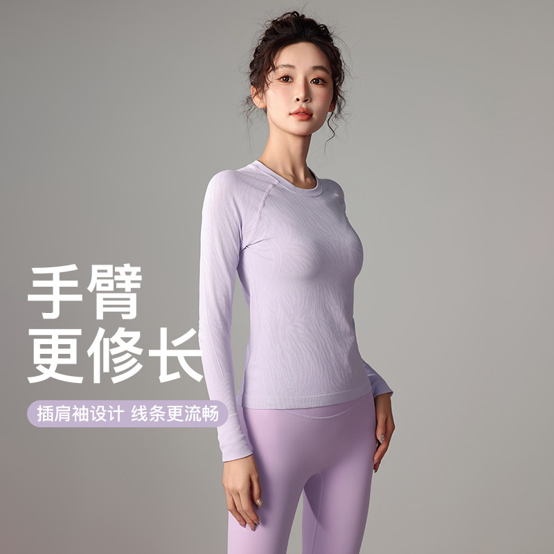3D薄款瑜伽服女运动上衣长袖t恤速干显瘦透气骑行跑步健身服春秋