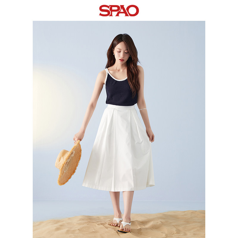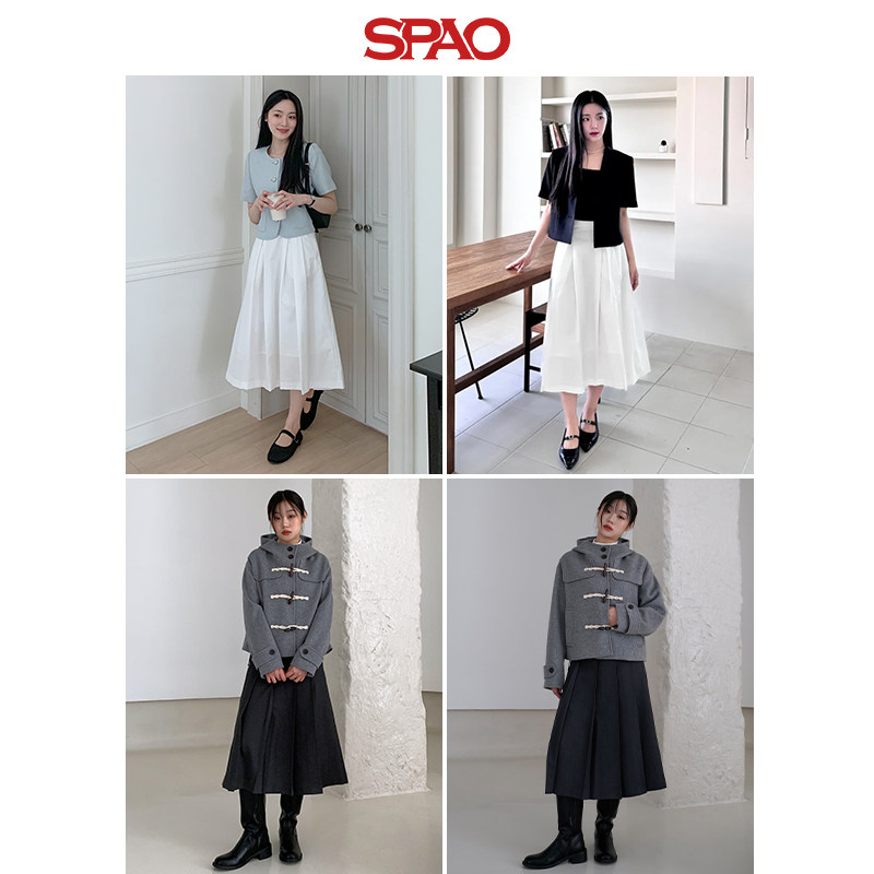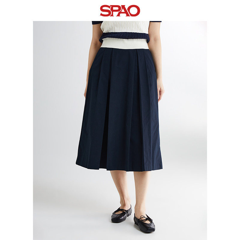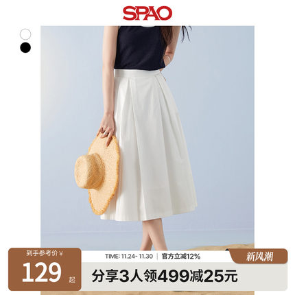 SPAO韩国同款春秋女士简约清新气质文艺百褶通勤纯色日常半身裙