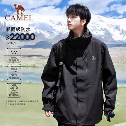 骆驼男装进藏冲锋衣2025春户外三合一压胶防风防水加厚夹克外套女
