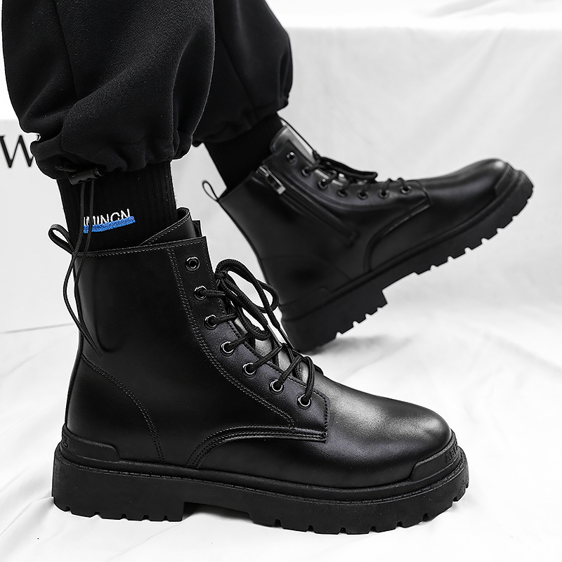 厨师男鞋秋季防滑防水厨房高帮皮靴黑色运动皮鞋机车工装马丁潮鞋