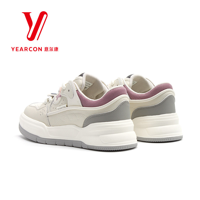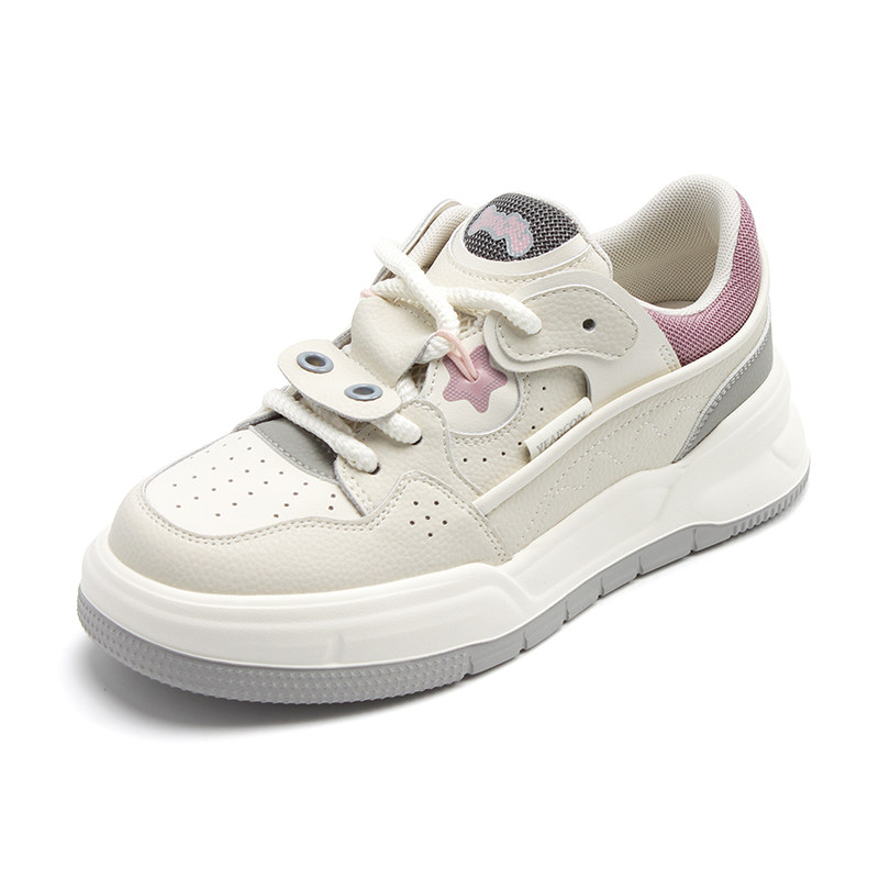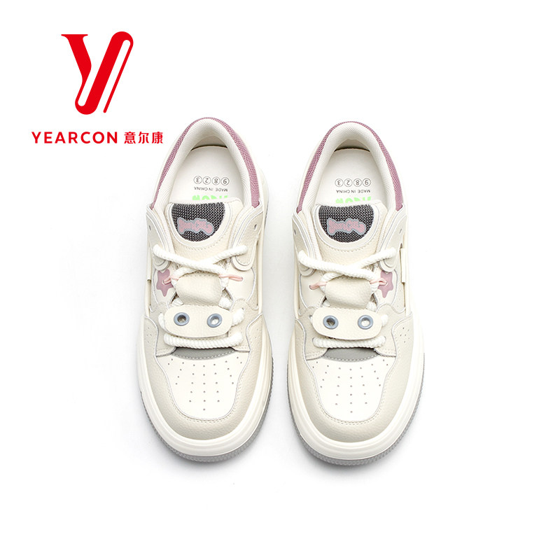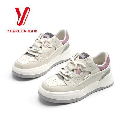 意尔康奶白厚底小白鞋女皮面2025春季新款卡通小众学生白色板鞋女