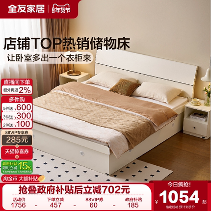 全友家居现代简约储物收纳床卧室家具1米8双人大床1.5单人板式床