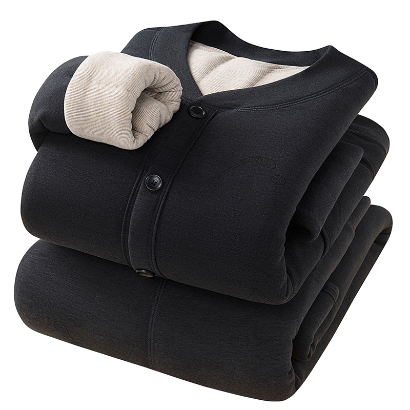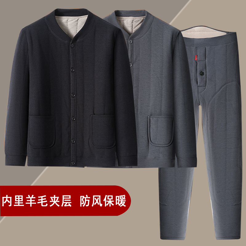 中老年男装羊毛保暖内衣套装秋冬