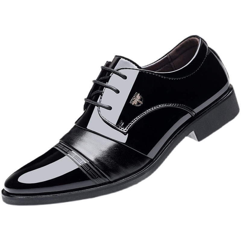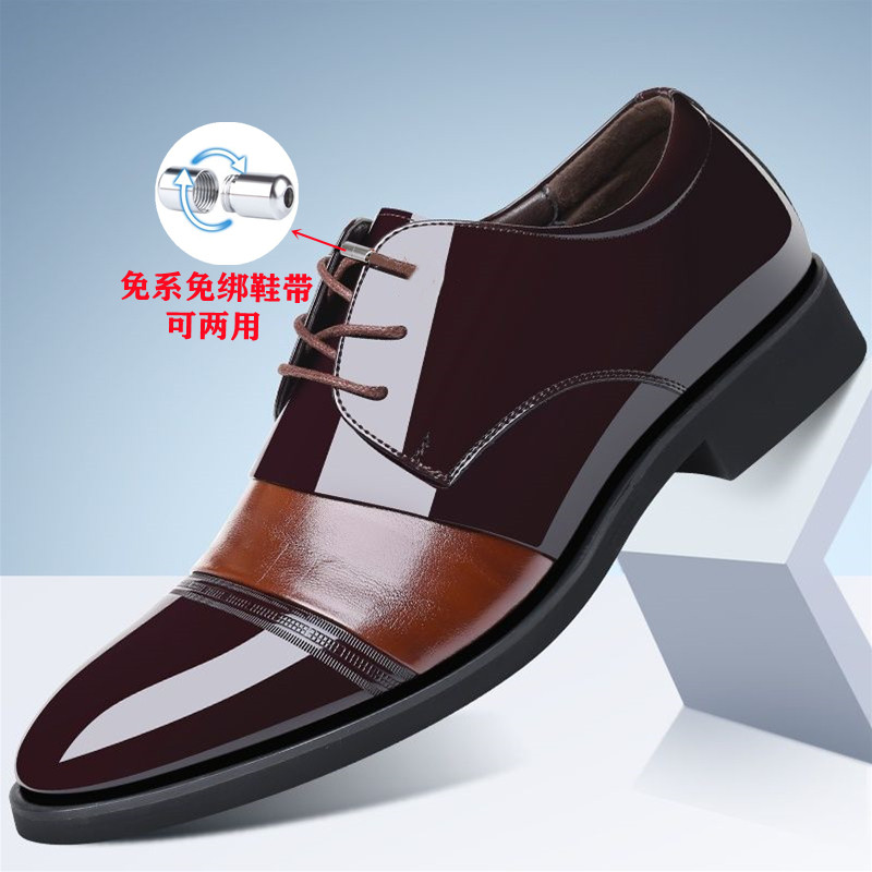 系带隐形内增高平底男式大码皮鞋