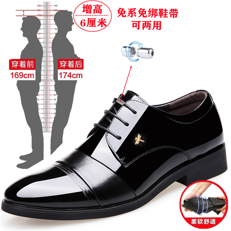 真软皮男士懒人皮鞋亮光男商务青年正装春秋内增高休闲款夏季透气