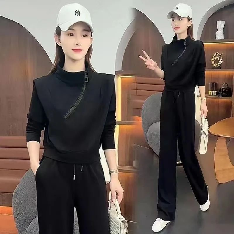 时尚休闲运动套装女2025春季新款洋气减龄显瘦卫衣阔腿裤两件套潮