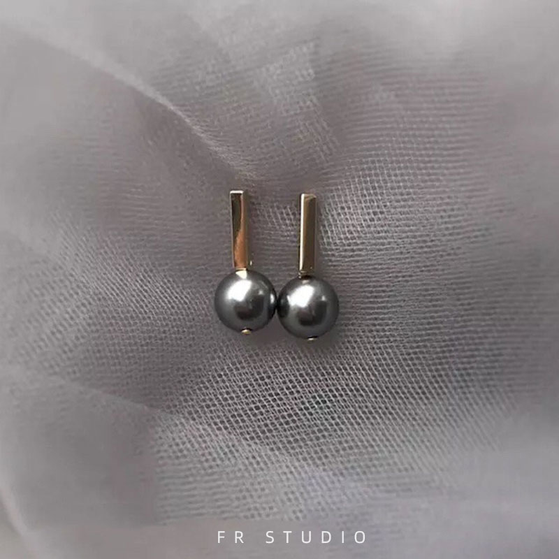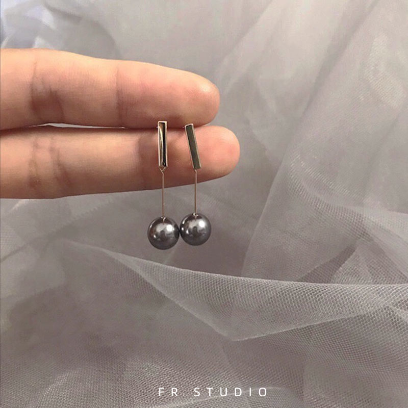 深灰黑珍珠耳夹复古长款显瘦耳环