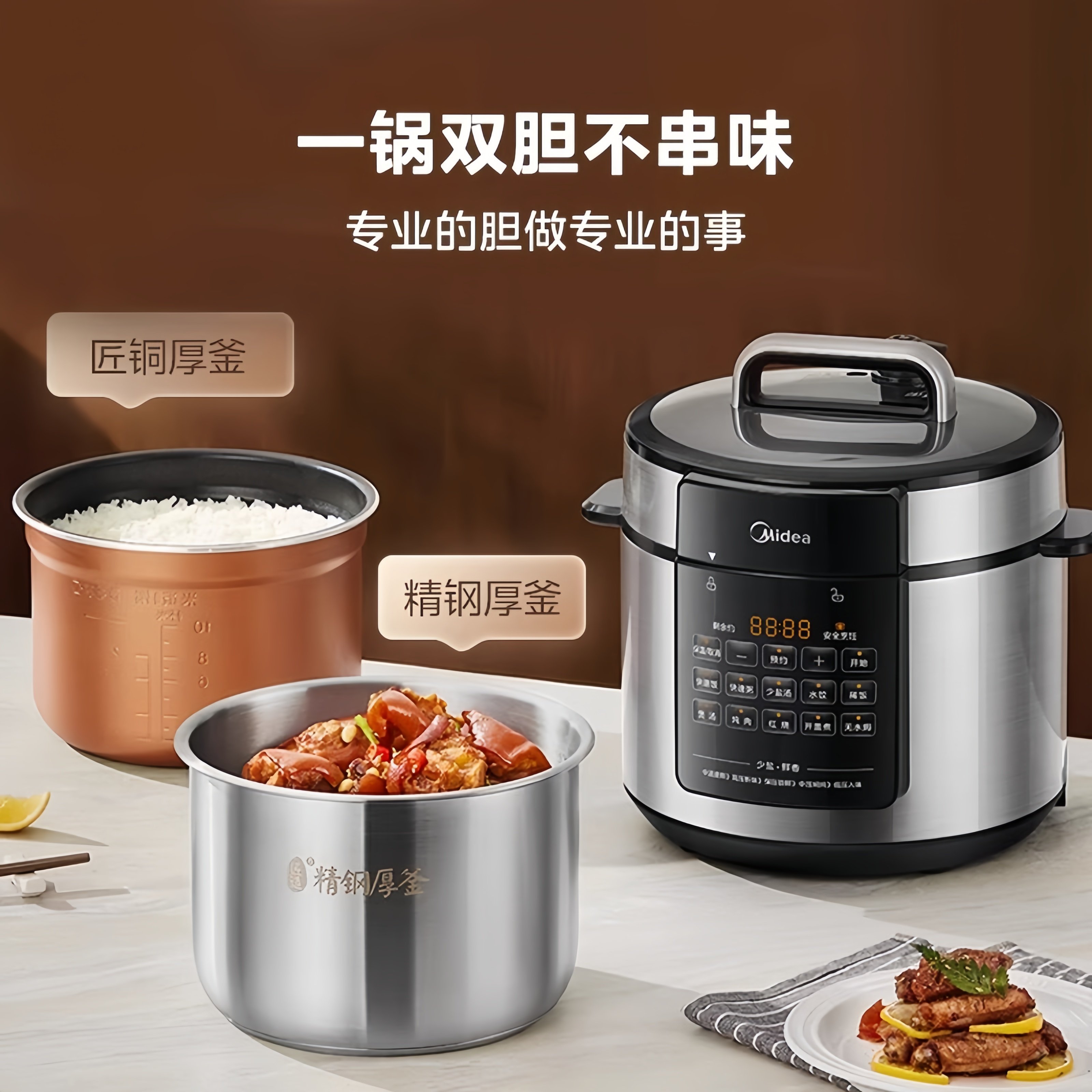 美的电压力锅家用新款6L大容量煲汤高压锅多功能全自动炖汤电饭煲