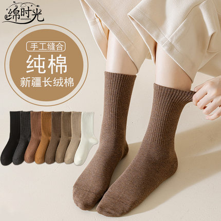 诸暨袜子女士中筒袜复古棉袜高橡筋吸汗秋冬女袜子