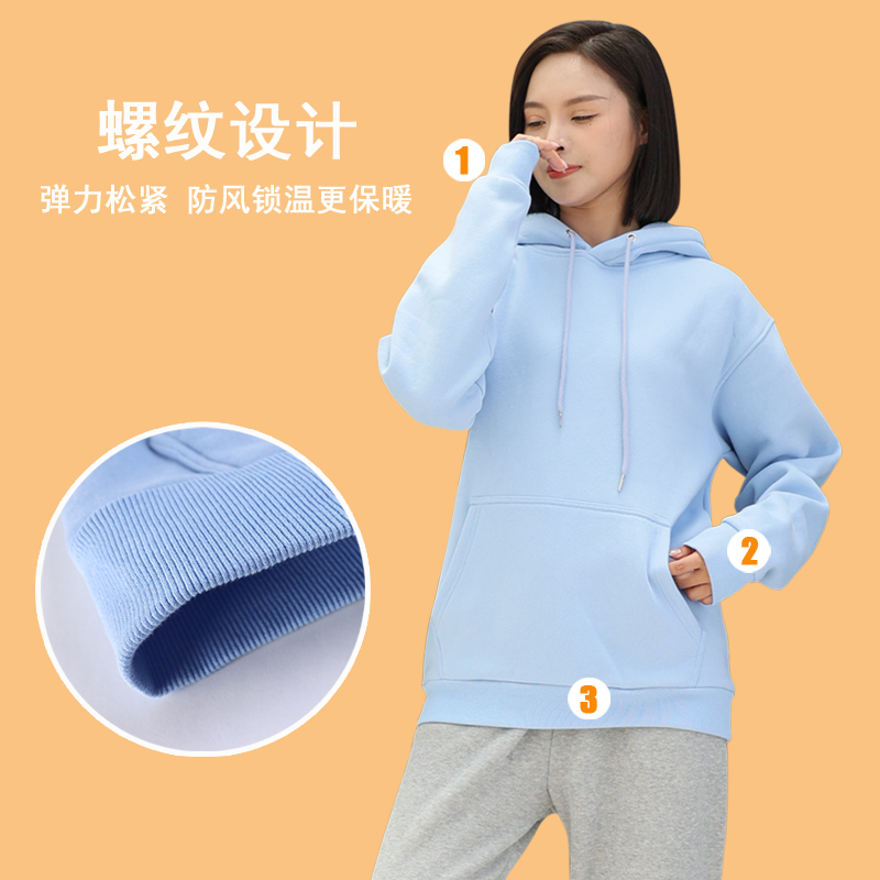 安尼欧加绒加厚卫衣女纯色连帽时尚款情侣男大码宽松套头外套