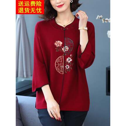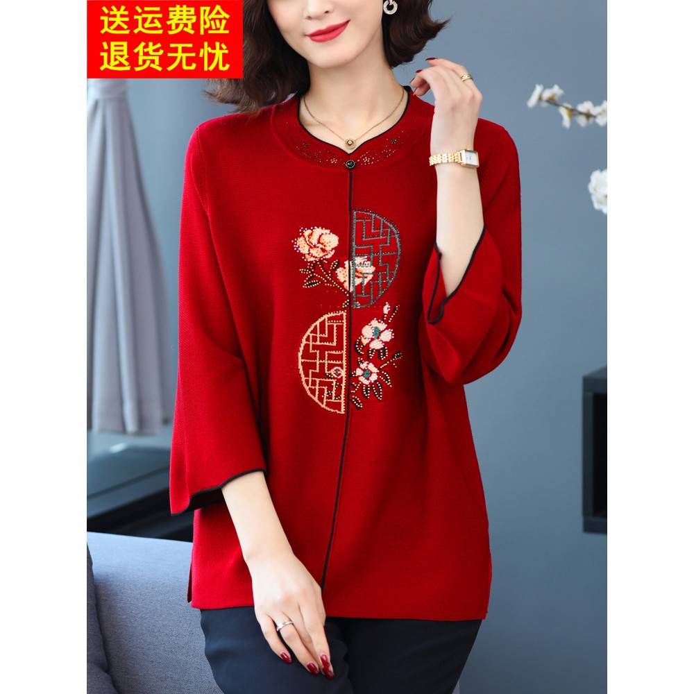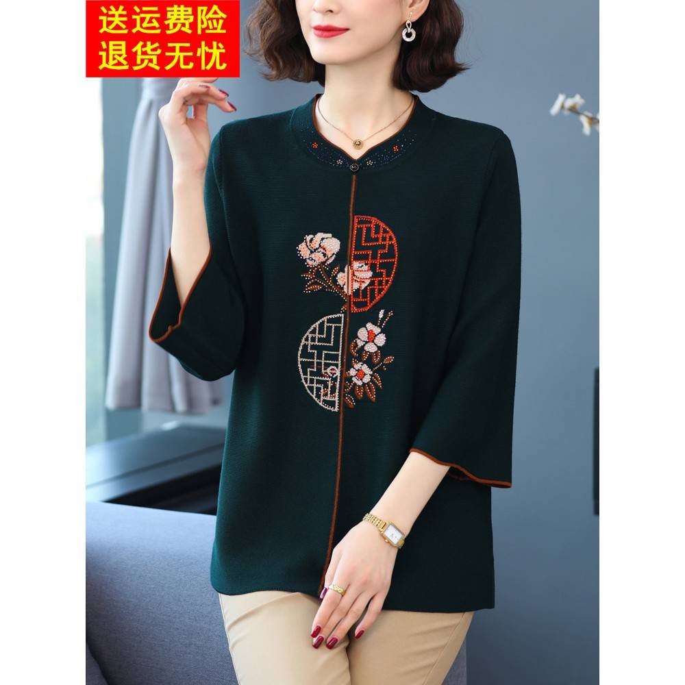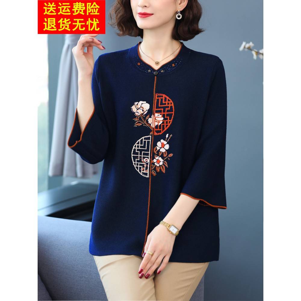 加肥加大码女装200斤春秋中老年胖妈妈冰丝上衣高贵针织T恤打底衫