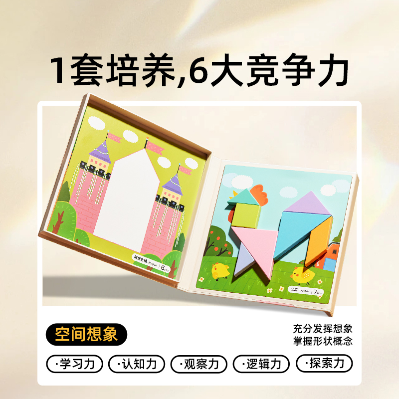 美乐童年磁性七巧板幼儿园小学生专用儿童益智磁力智力拼图3到6岁