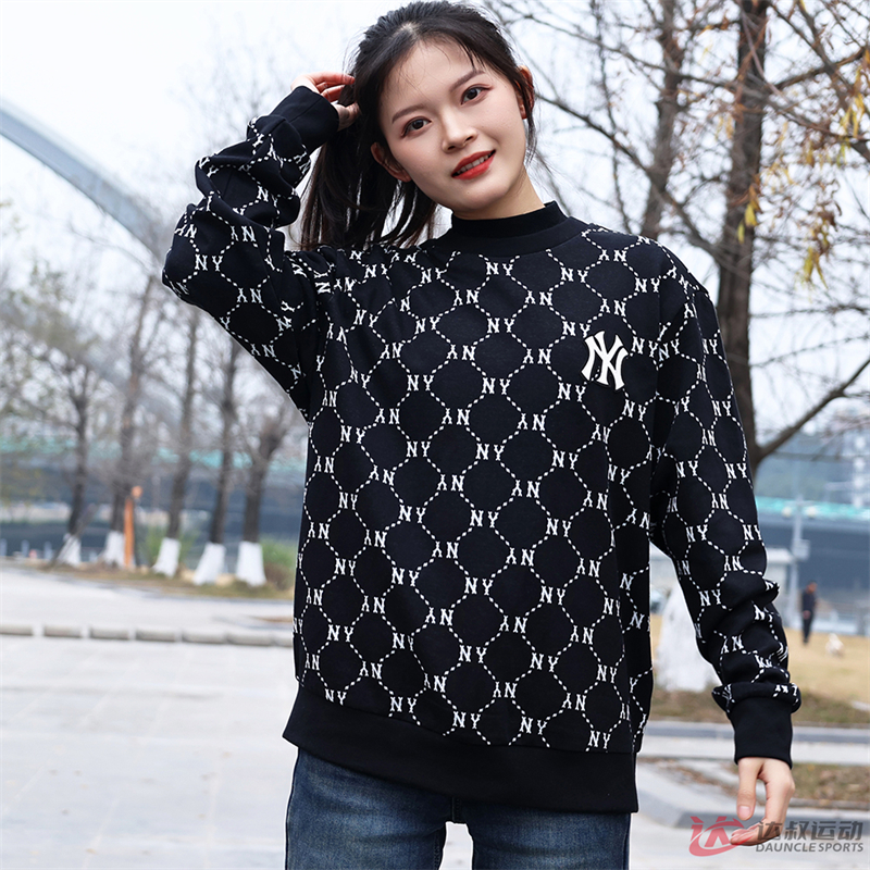 24新款MLB情侣运动卫衣男女NY复古老花满标休闲套头衫3AMTM0141