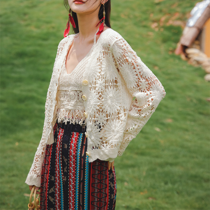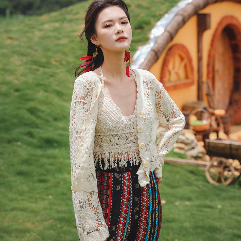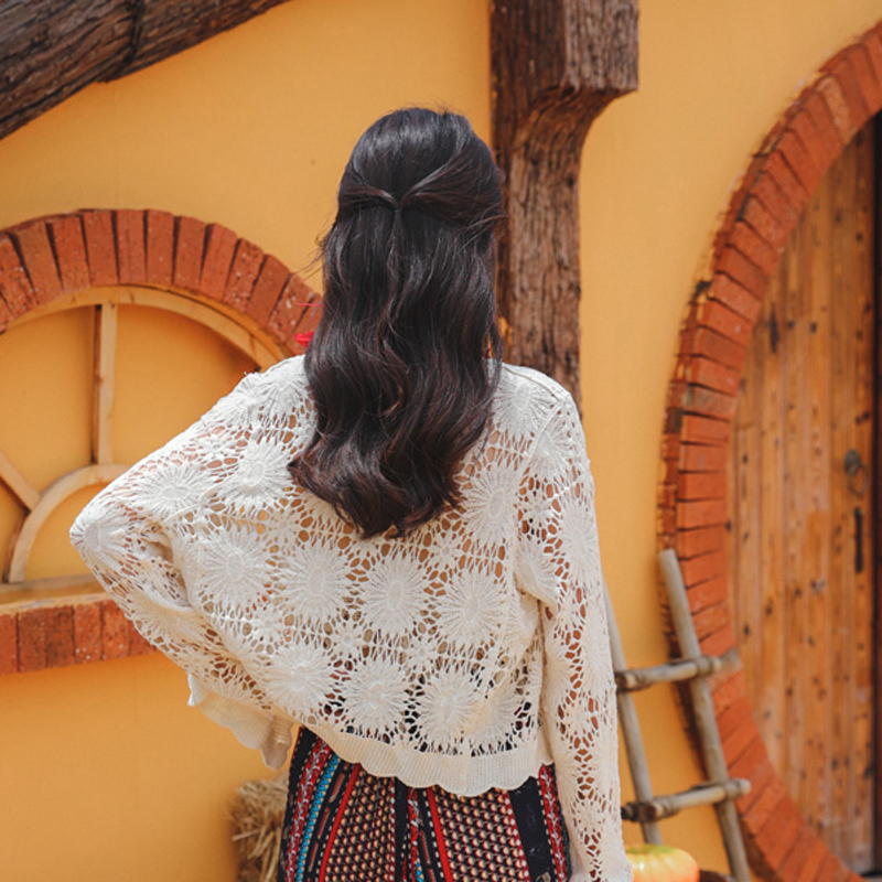 镂空针织衫短款披肩开衫早秋绣花上衣配裙子小外套长袖气质外搭潮