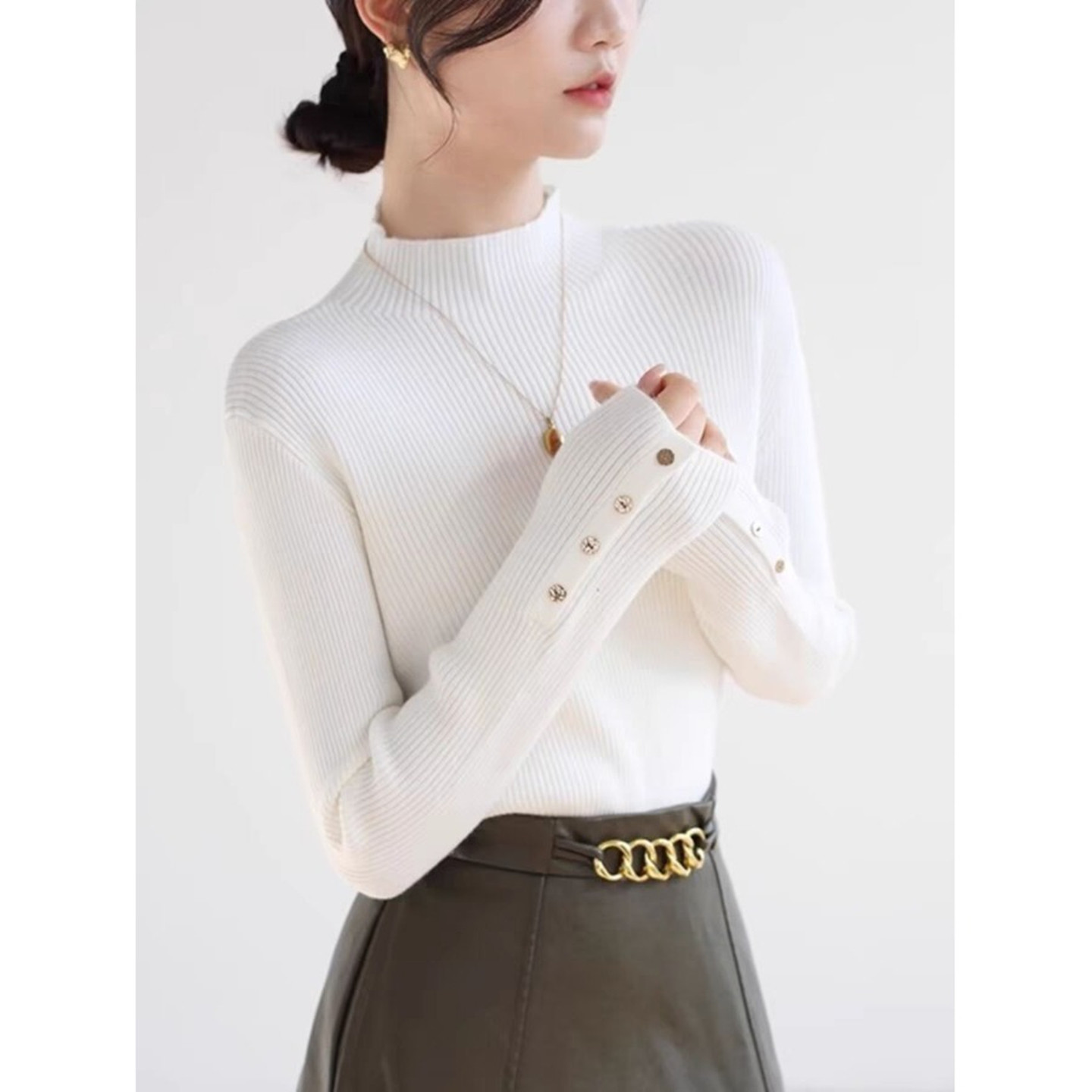秋冬内搭外穿高级感长袖打底针织衫上衣半高领修身紧身灰色毛衣女