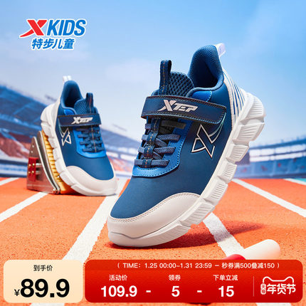 特步童鞋秋冬新款男童中大童轻便便捷舒适百搭魔术贴儿童运动跑鞋