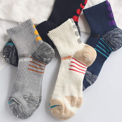 袜子男秋冬个性直角设计纯棉中筒袜毛巾底加厚保暖吸汗篮球运动袜
