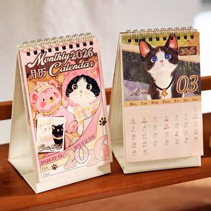2026年创意可爱卡通动物猫咪台历ins文艺小狗日历桌面小摆件月历