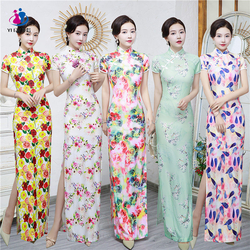 旗袍2022年新款夏季复古中国风女装花朵长款年轻款改良表演连衣裙