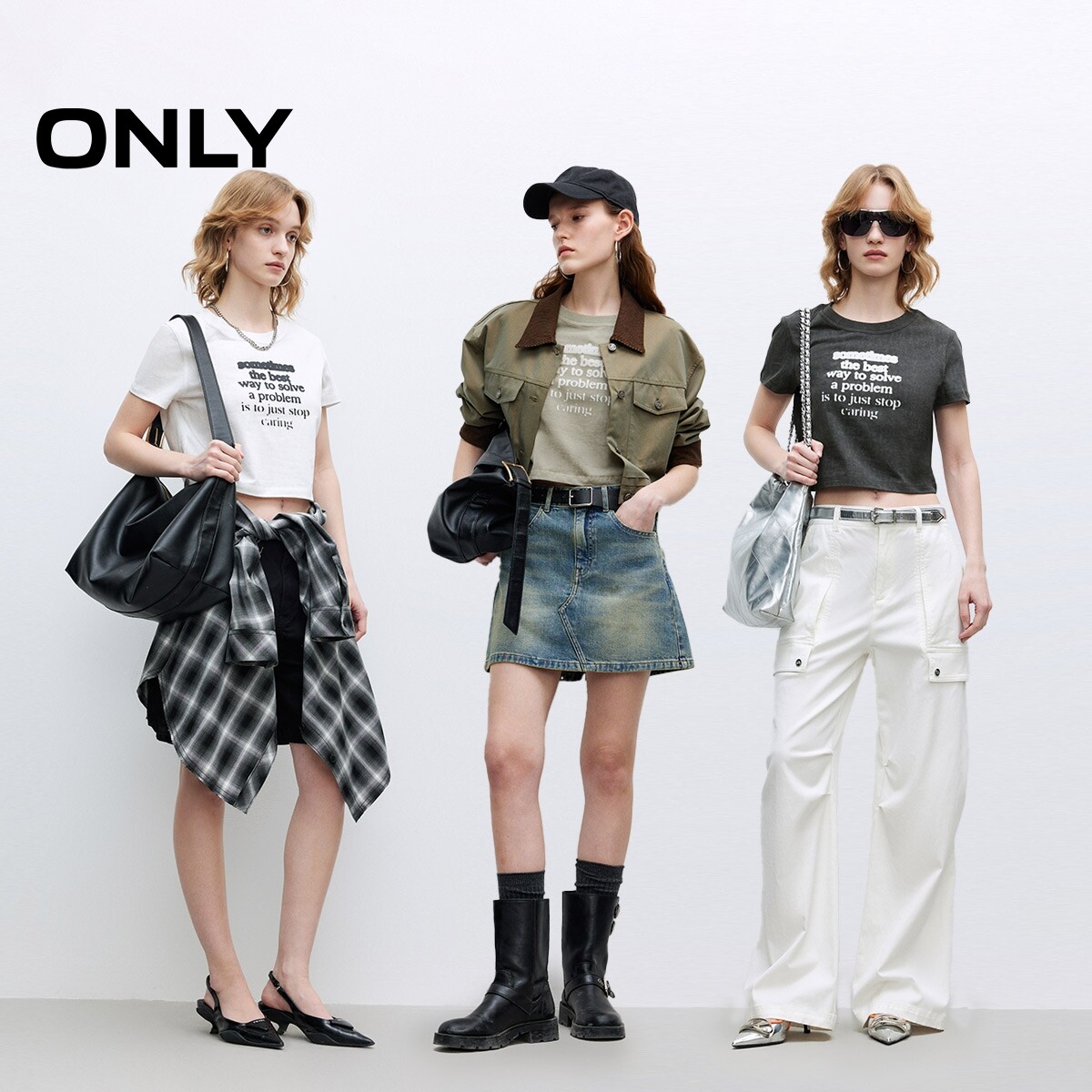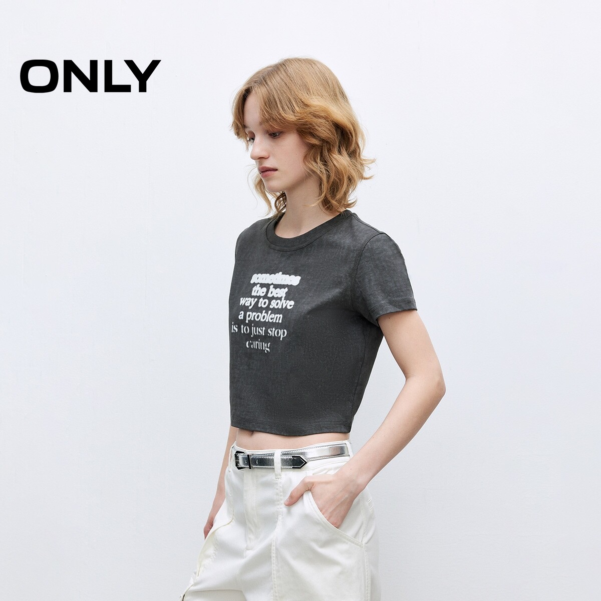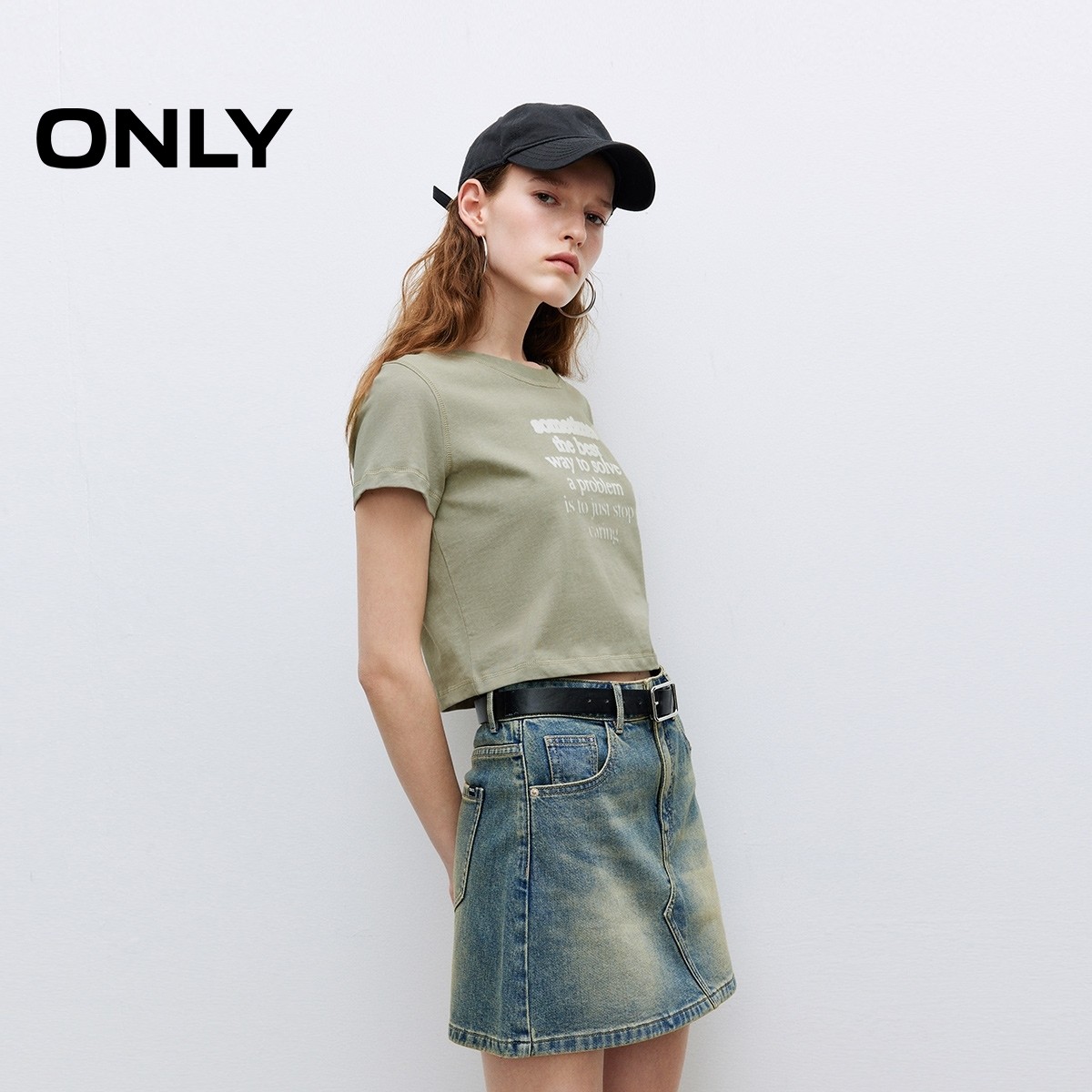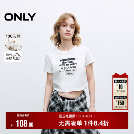 ONLY2025夏季新款个性渐变字母印花纯棉圆领短款正肩短袖T恤女
