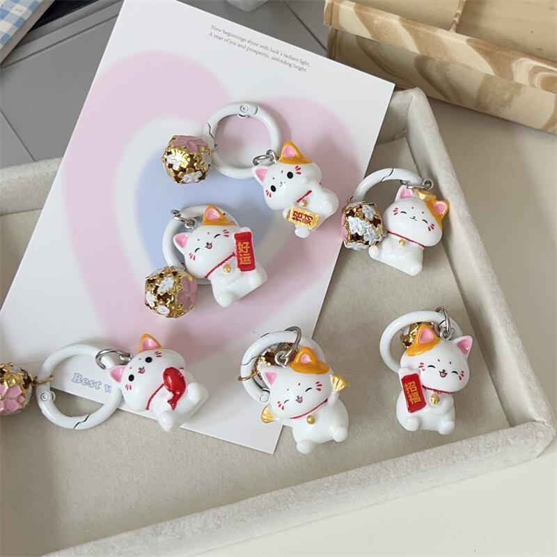 萌趣立体招财猫铃铛钥匙扣可爱卡通少女包包挂件饰品情侣闺蜜礼物