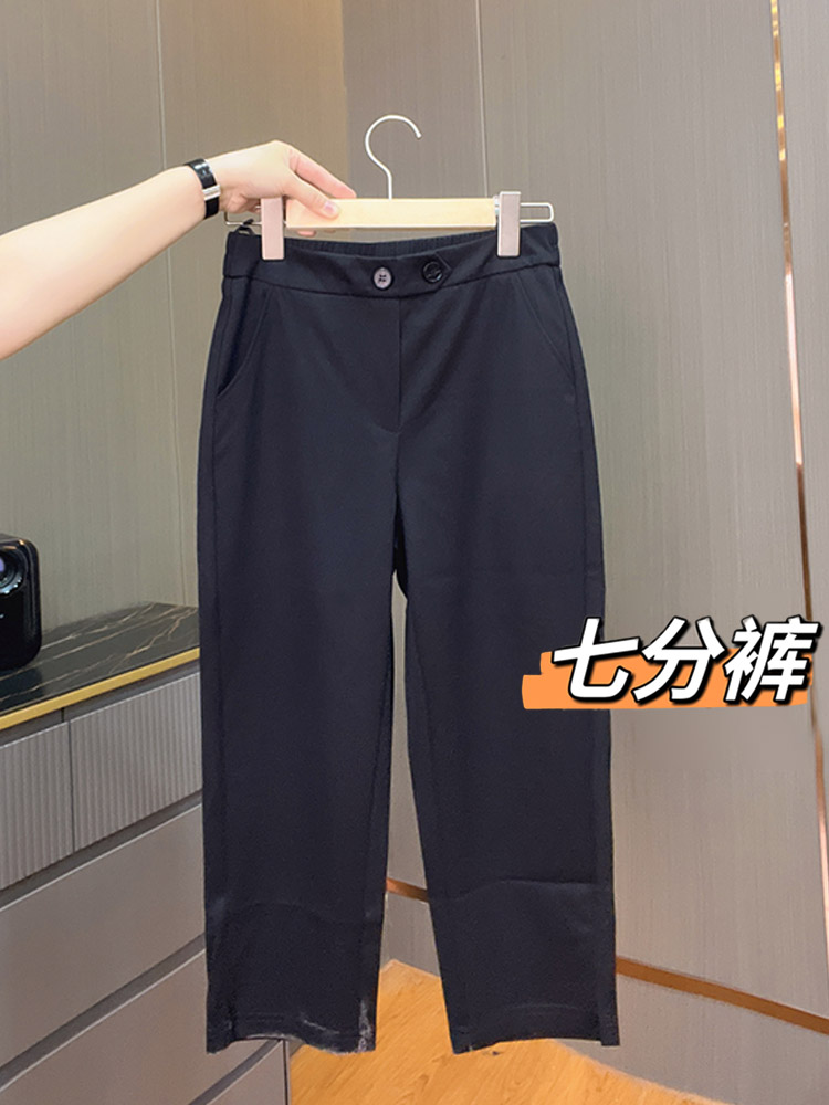 夏季新款时尚百搭七分西装裤女显瘦松紧腰夏季弹力妈妈直筒休闲裤