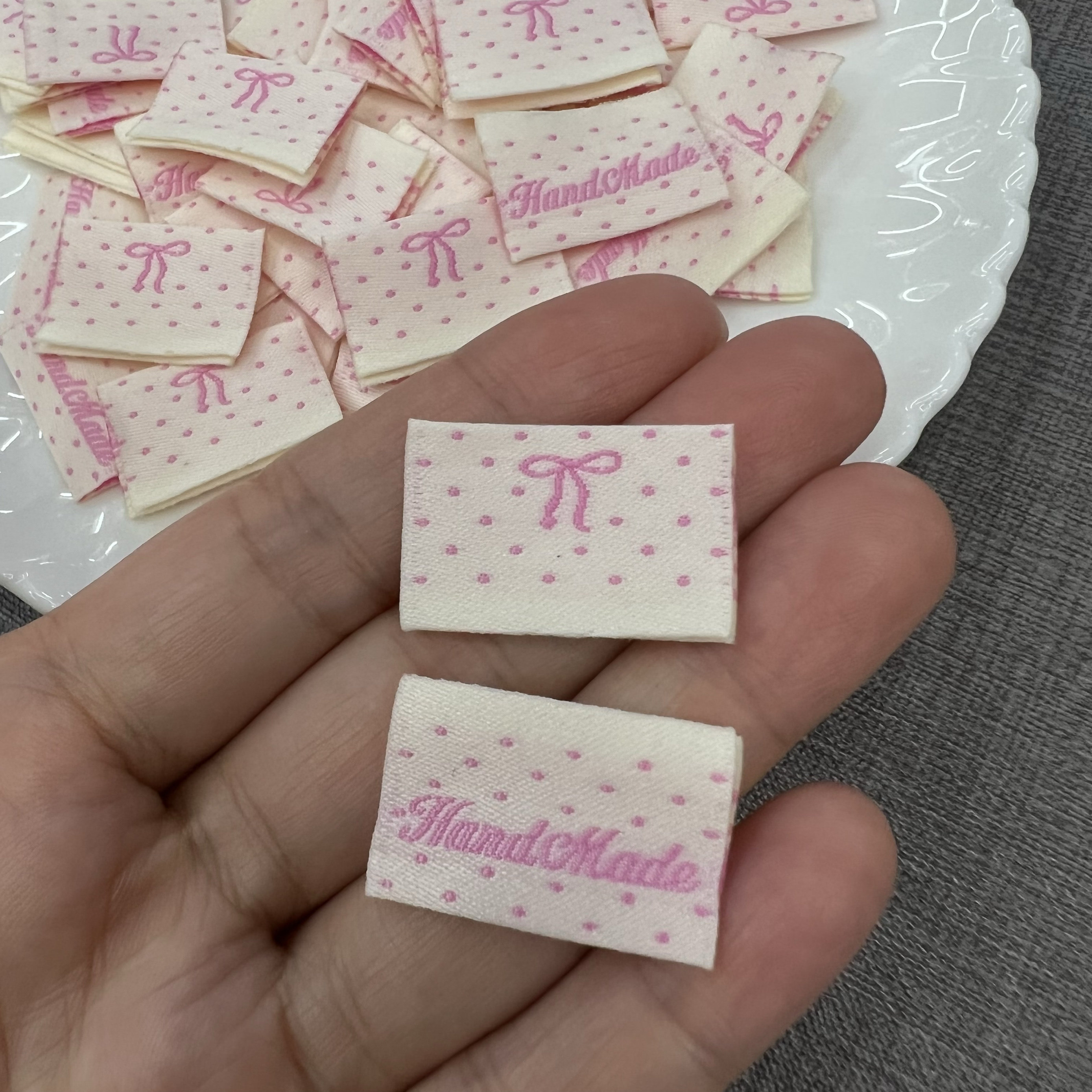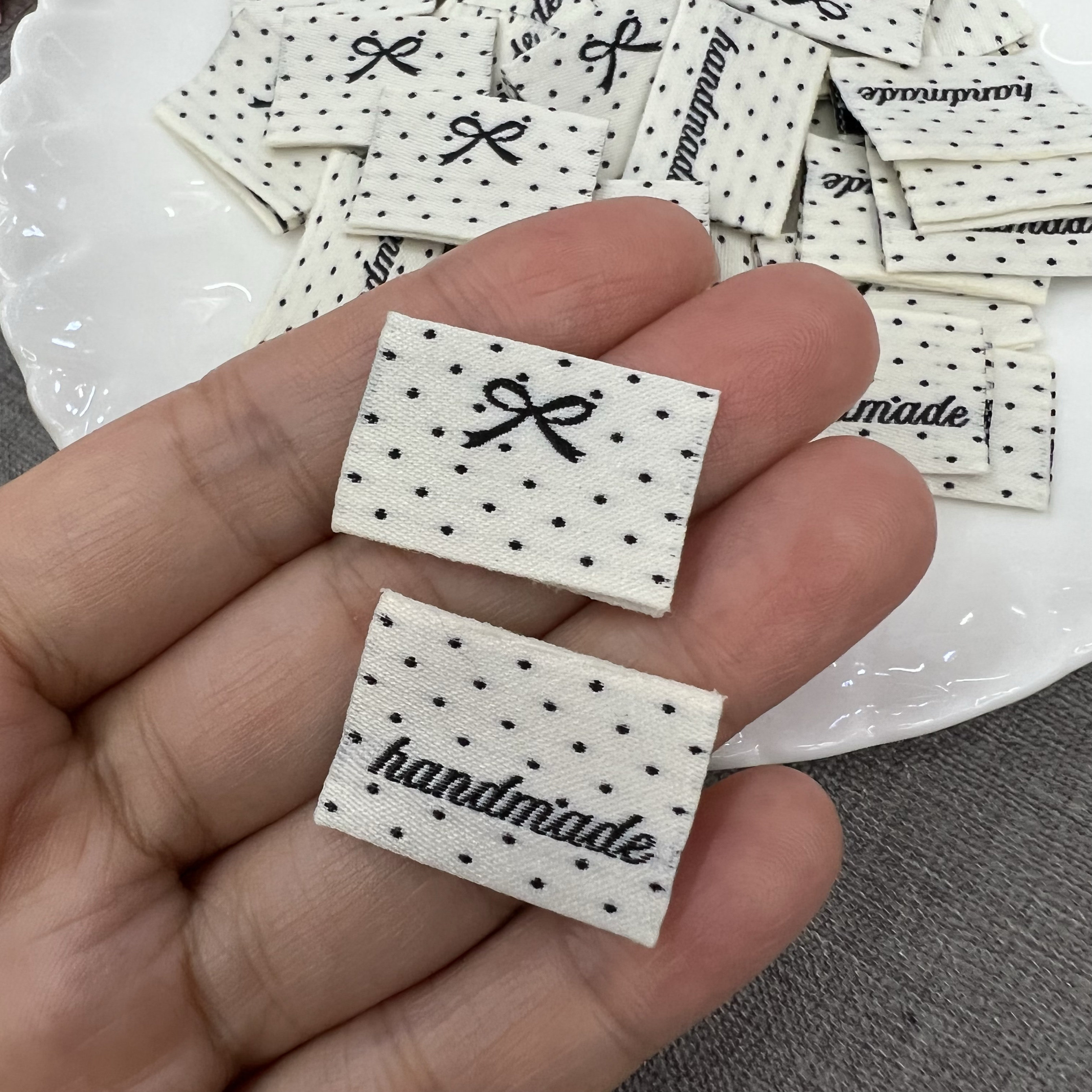 小红书推荐波点蝴蝶结肠圈对折标织标布织布卡通水洗标手工现货