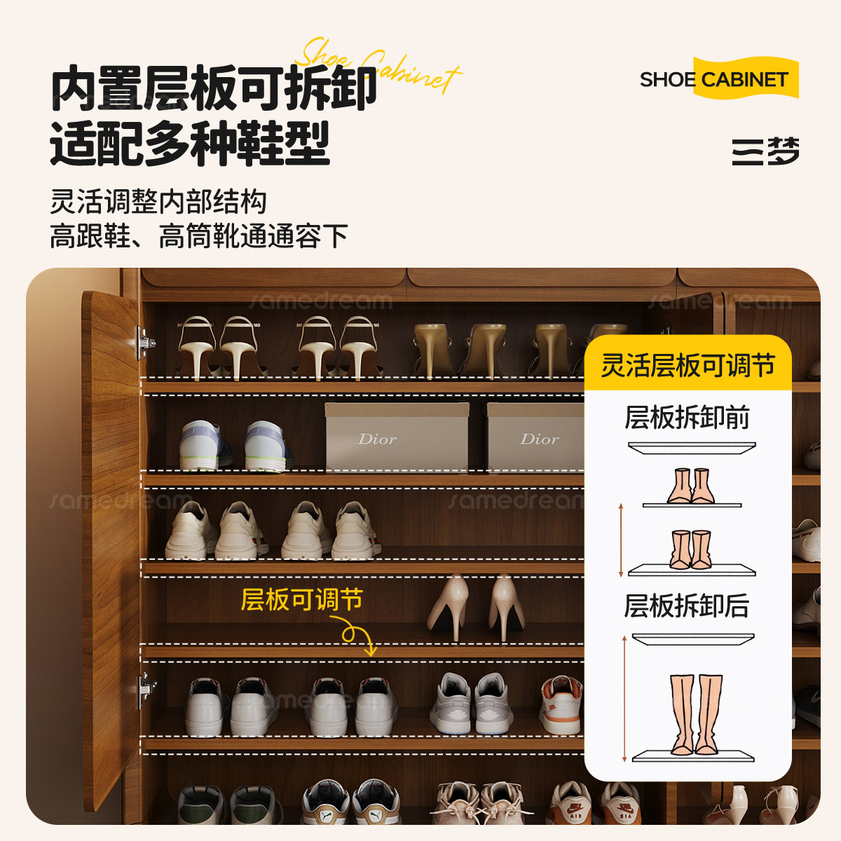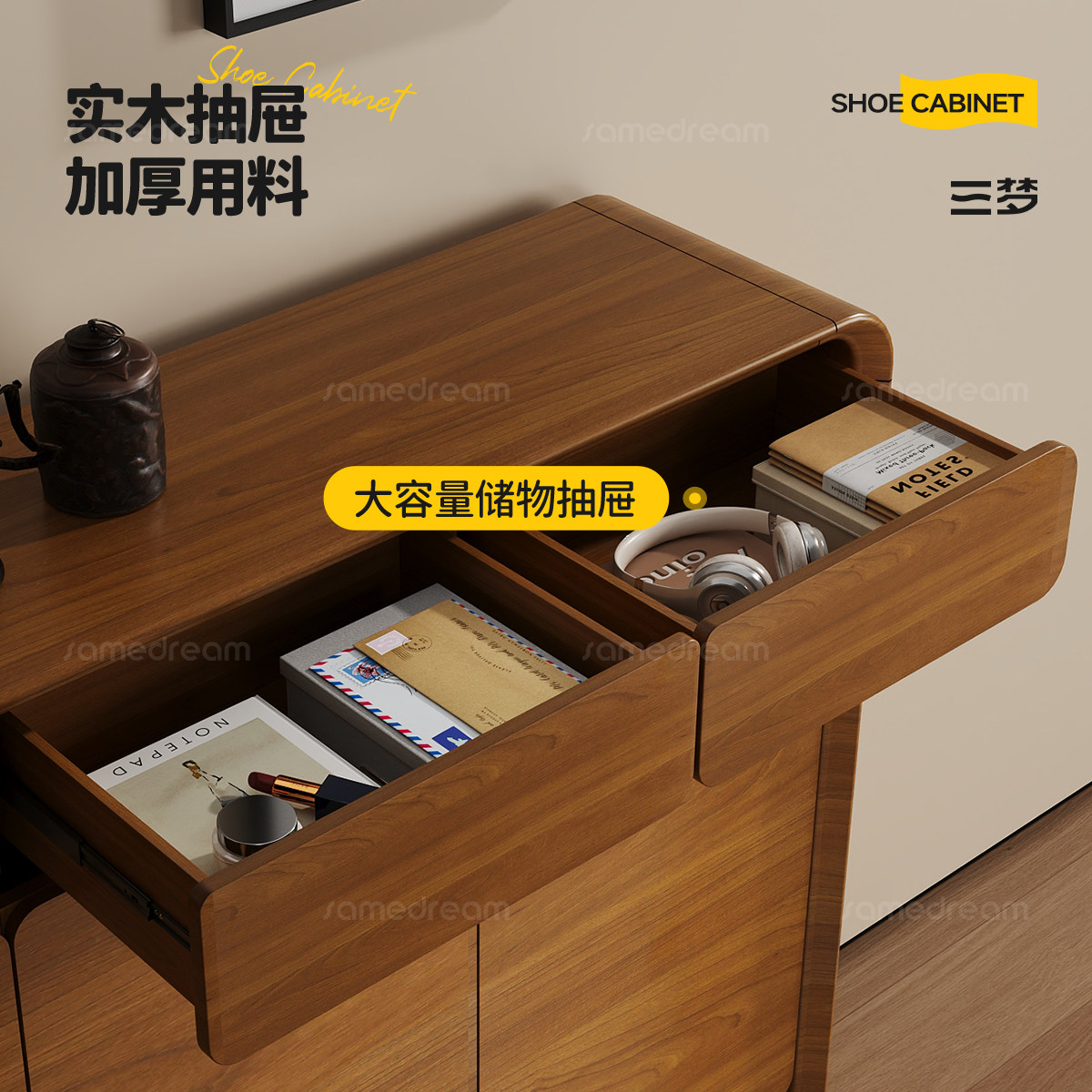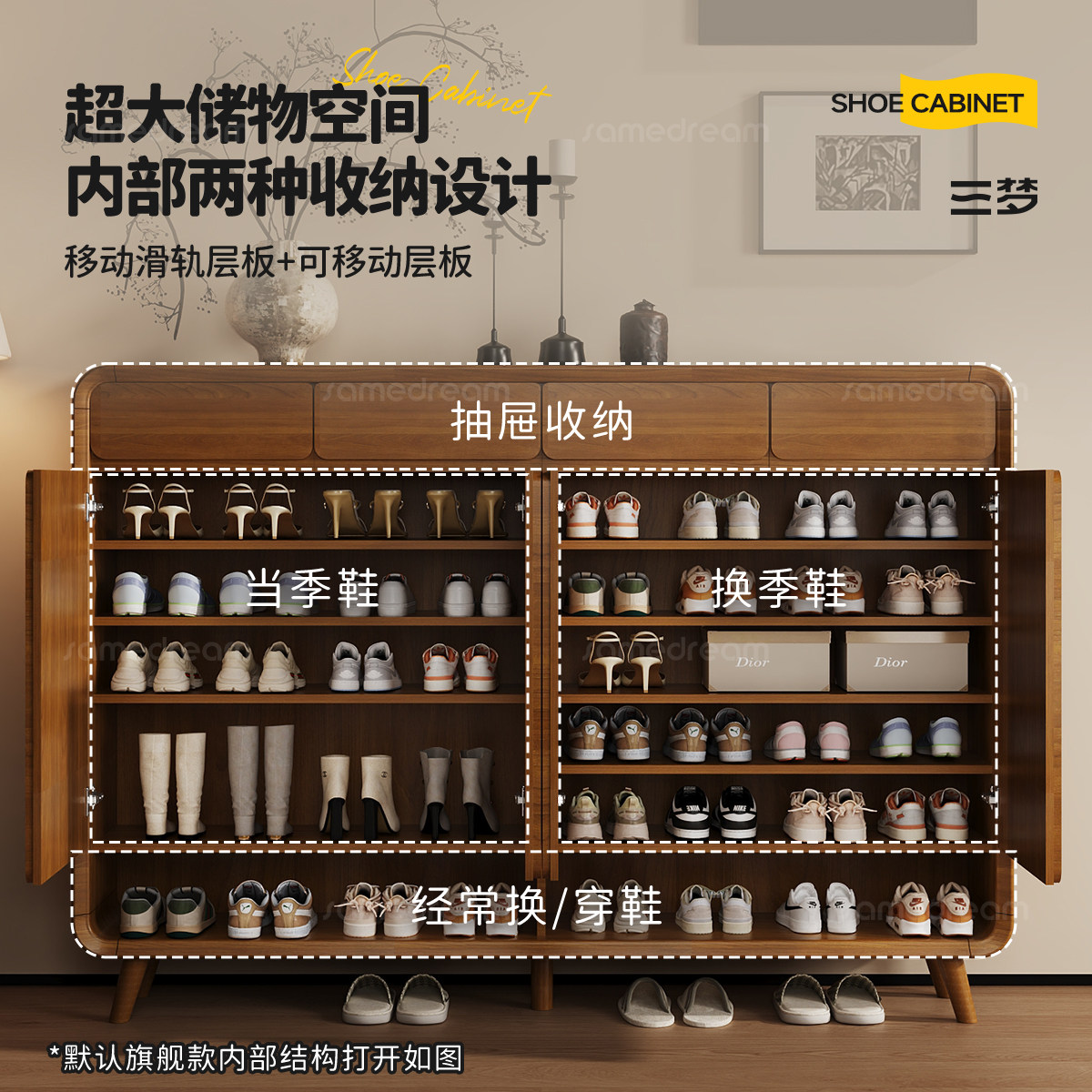 三梦全实木玄关鞋柜收纳柜一体家用门口入户门大容量收纳柜楼道外