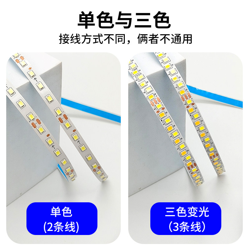 三色led变光软灯带恒流2835灯珠光源灯芯自粘吸顶灯维修替换光源