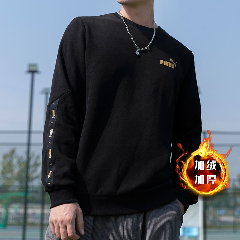 PUMA彪马加绒卫衣男冬季新款男士黑色金标长袖宽松运动套头衫