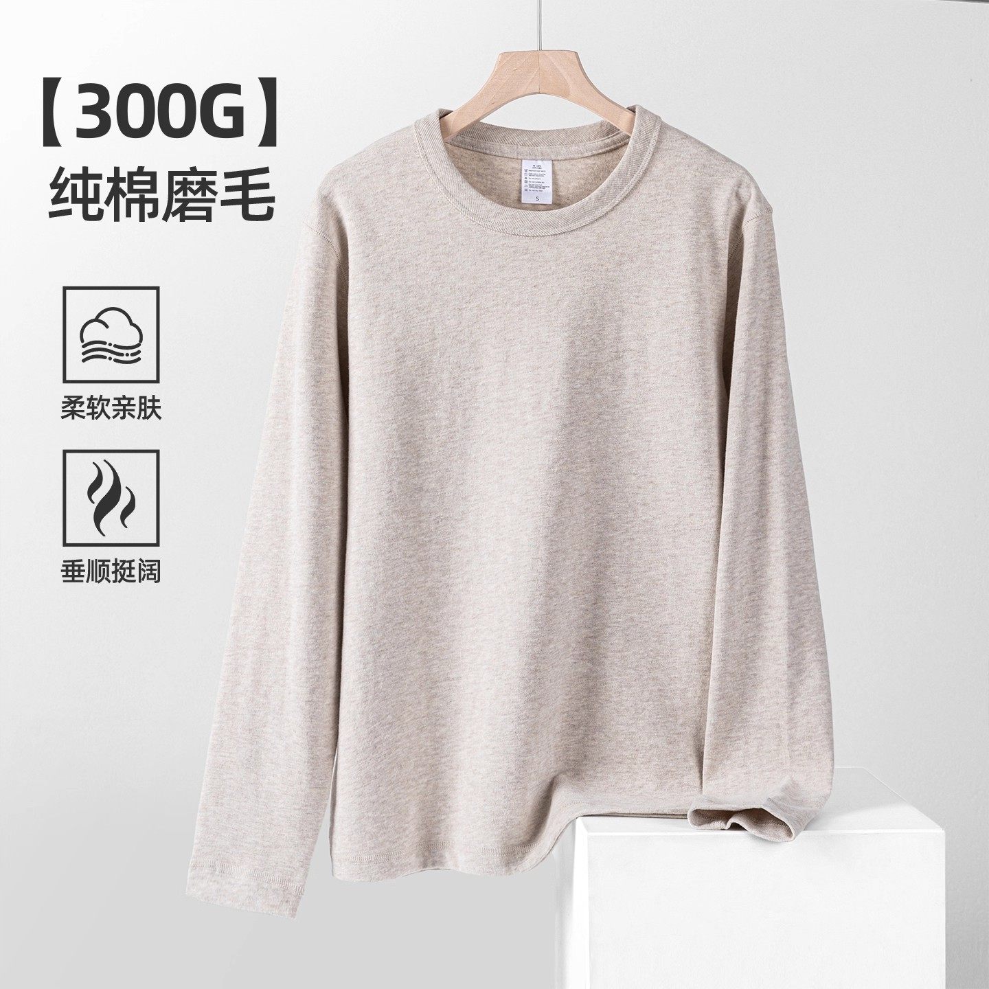 砂灰色300g重磅新疆纯棉长袖T恤