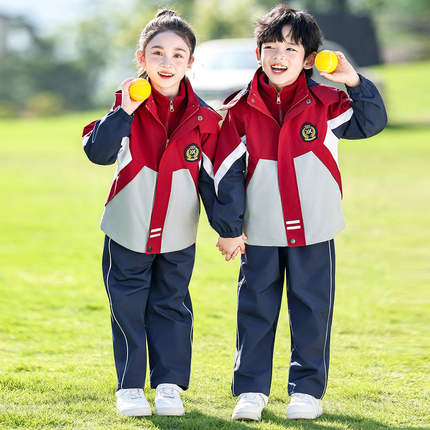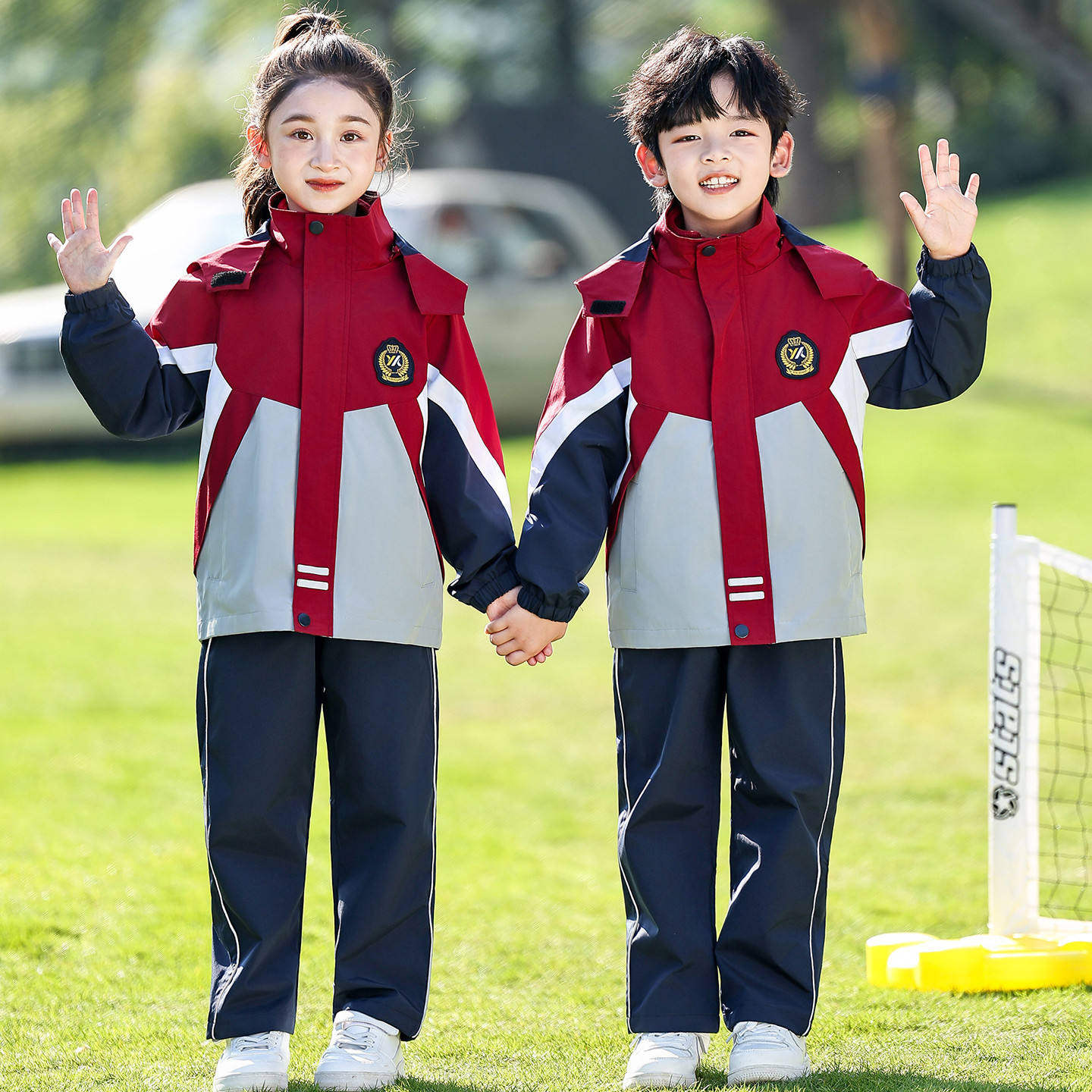 新款小学生班服套装秋冬装冲锋衣三件套幼儿园园服春秋季儿童校服