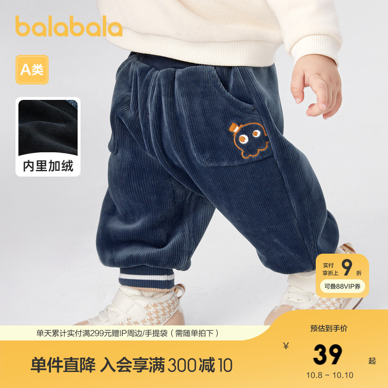 巴拉巴拉婴儿裤子男童宝宝秋冬长裤天鹅绒加绒加厚保暖舒适可爱潮