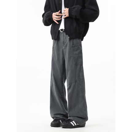 YorkZoom秋季新品美式工装裤水洗做旧牛仔裤长裤百搭高街宽松