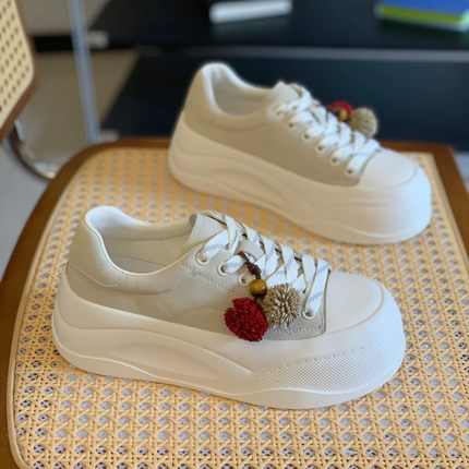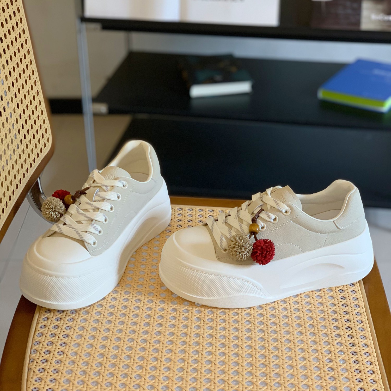 网红爆款个性百搭真皮休闲鞋女2025秋季新款松糕厚底显腿长小白鞋
